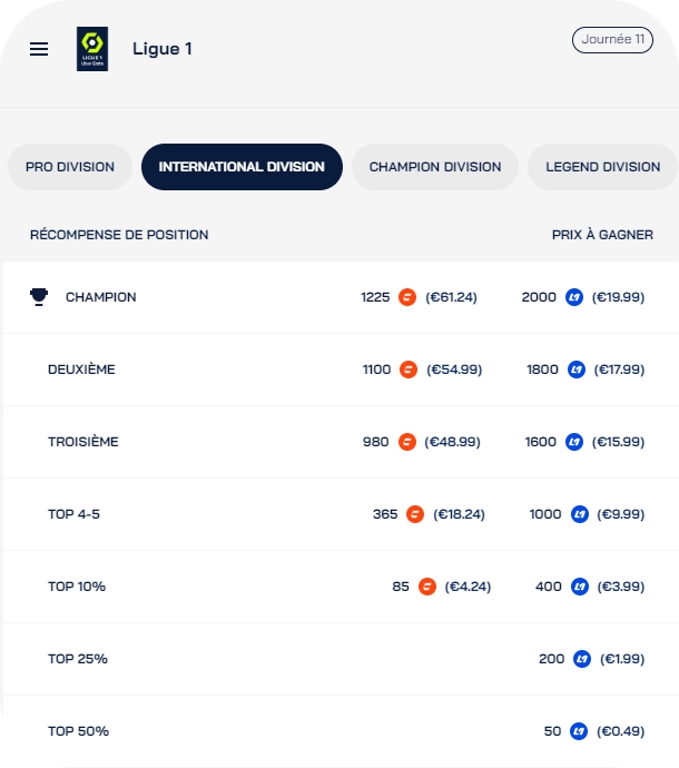 Winning tournaments is the easiest way to earn loads of Coachiz, the Coach Ligue 1 utility token, and L1C token, with higher positions earning more.
