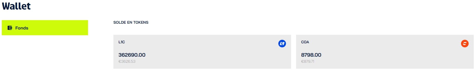 Le portefeuille en jeu permet aux joueurs de consulter leur solde en L1C - Ligue 1 Coin etCoachiz Token.